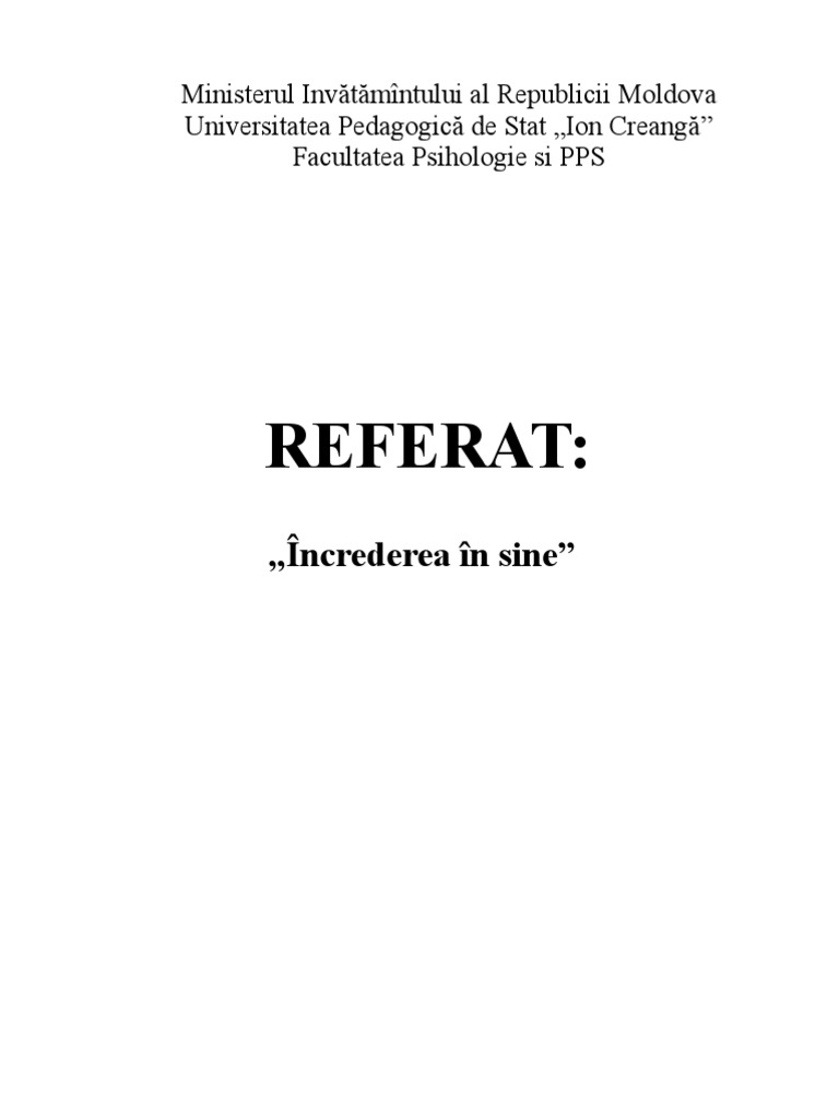 Referat Increderea In Sine Si Relatia Ei Cu Celelalte Componente Ale Constiintei De Sine Psihologie 87833